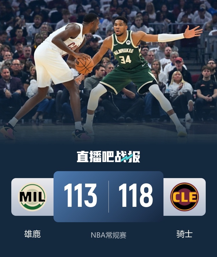10月27日讯 NBA常规赛,雄鹿对阵骑士。
