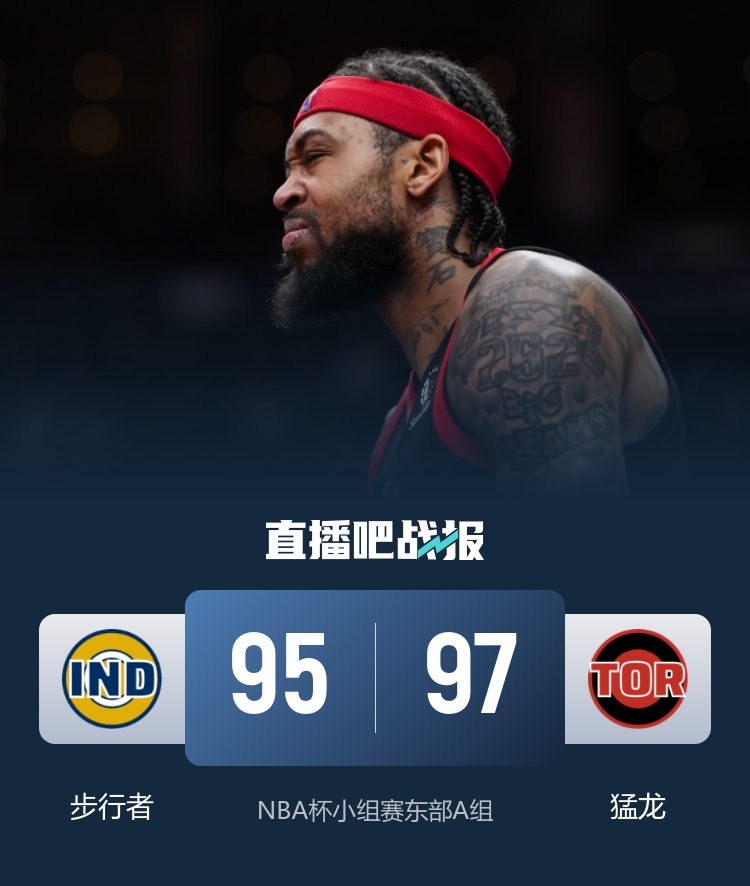 开场后两队手感都不太理想,沃克外线多次把握机会投进三分,猛龙则是靠巴恩斯、英格拉姆和奎克利三人轮番拿分。第二节上来步行者延续攻势率先拉大分差,猛龙进攻内线咬住比分,随后两队陷入拉锯战,猛龙半场结束前一波12-0将比分反超。易边再战,英格拉姆带领猛龙延续攻势,又是一波13-1的攻势建立起两位数优势。此后西亚卡姆站出来频频强攻帮助步行者咬住比分。最后一节马瑟林连中三分帮助步行者夺回领先,巴恩斯站出来为猛龙稳住阵脚,随后两队连续打成平手,最后时刻英格拉姆中投完成绝杀,最终猛龙97-95险胜步行者豪取9连胜,步行者遭遇3连败。