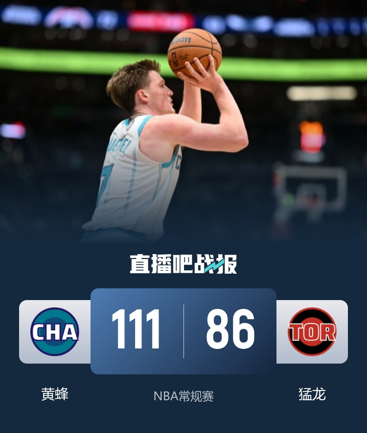 开场后巴恩斯手感火热独得7分,卡尔克布伦纳内外开花接连拿分还以颜色,此后猛龙多点开花再度建立领先。第二节上来黄蜂找到进攻节奏,在鲍尔和布里奇斯的带领下黄蜂打出一波16-0的攻势完成反超,虽然英格拉姆站出来连续拿分止血,但黄蜂趁势追击继续扩大优势,半场结束时黄蜂领先11分。易边再战,猛龙找回一些状态将分差缩小,随后黄蜂及时找回手感做出回应,两队一直围绕10分左右拉锯。最后一节,黄蜂一鼓作气掀起14-2的攻势将分差拉大到20分,奎克利依旧凭借一己之力为猛龙打破得分荒,但猛龙其他球员状态糟糕,黄蜂全面开花再度将分差拉大到20分以上,最终黄蜂111-86大胜猛龙结束2连败,猛龙遭遇2连败。